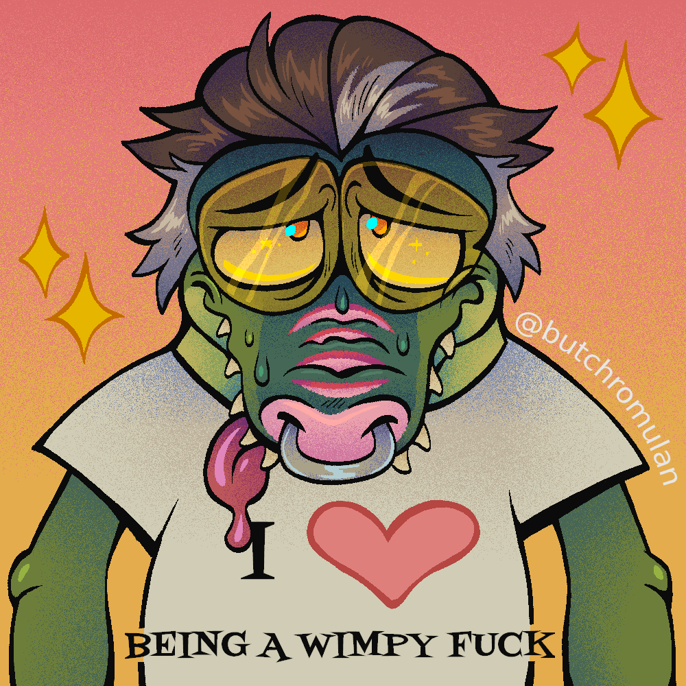 his gender, tbutch lesbian, is of course... my own! i'm guarded and can come off kind of standoffish and cold (irl. it's easier to be more Outwardly Friendly online imo!), and i've endured a lot; being who i am is not for the faint of heart! crocs can definitely be brutal, but show surprising (to some!) tenderness, too. i use my fursona to express more "abstract" concepts of my gender and express pride in my body... if only i could have a big scaly tail irl!